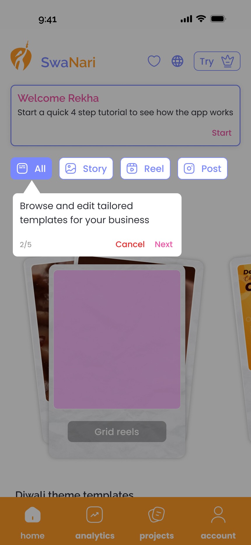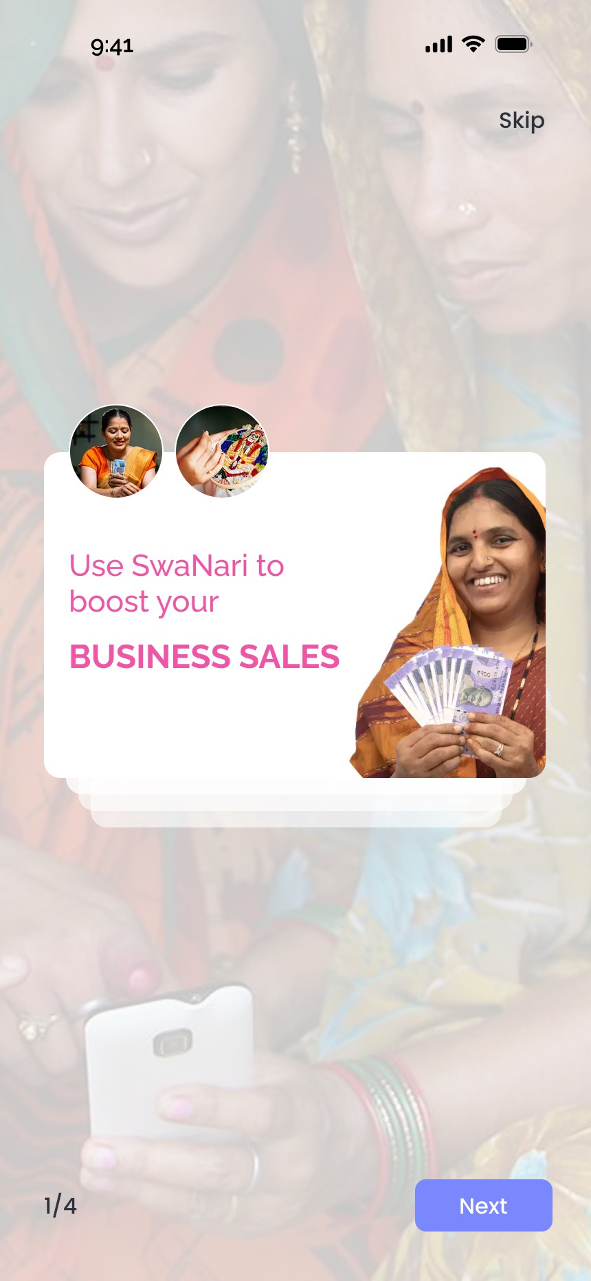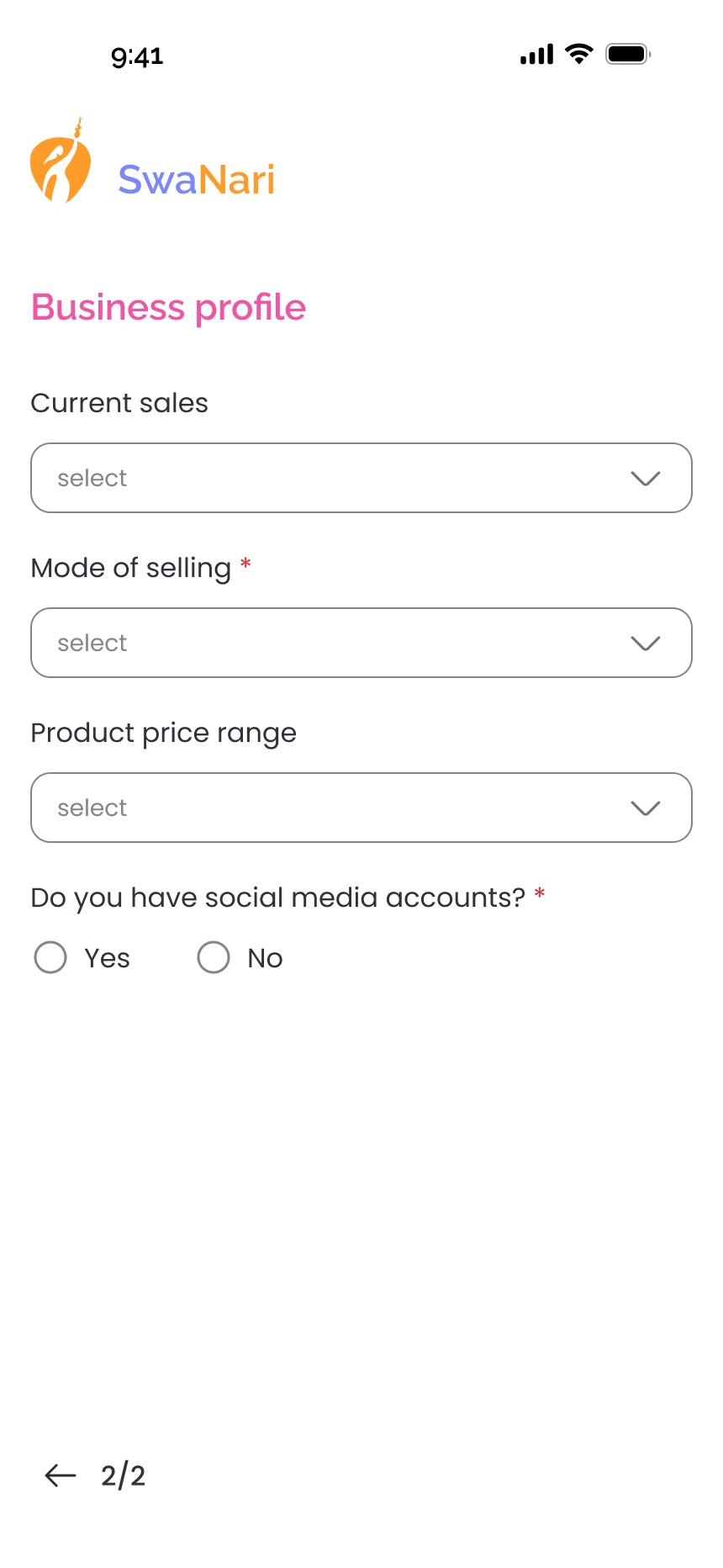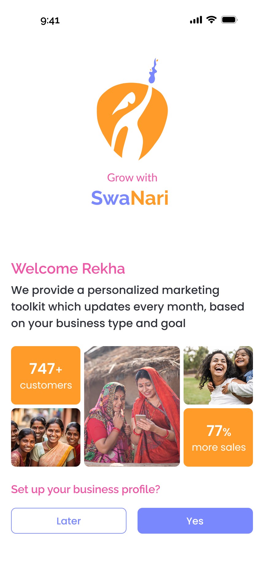 I designed an intuitive onboarding flow that helps women create a complete business profile in minutes. The setup captures essential details like the business name, location, product category and prices. This would help generate customized templates for the user