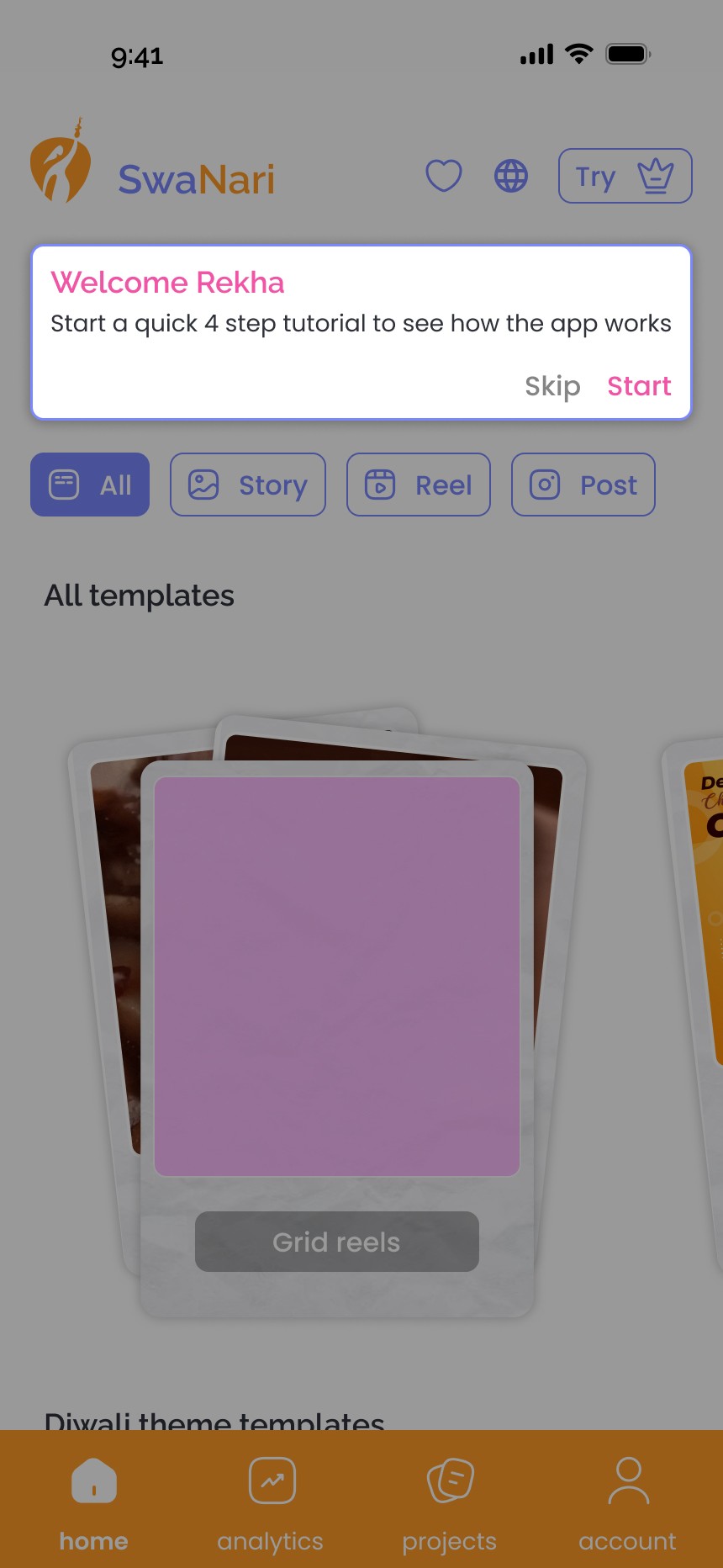 Swipe templates