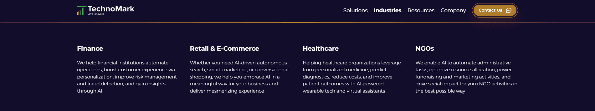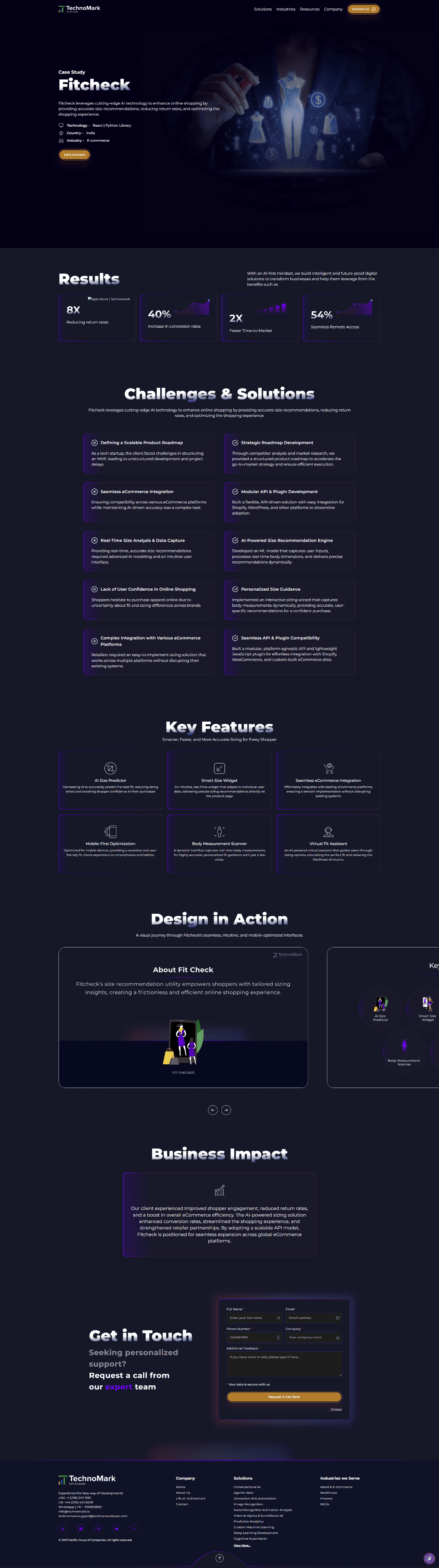 The platform acts as a discovery layer for potential clients to quickly understand TechnoMark’s AI-driven solutions, industries served, and technical credibility, guiding them seamlessly from exploration to inquiry.
