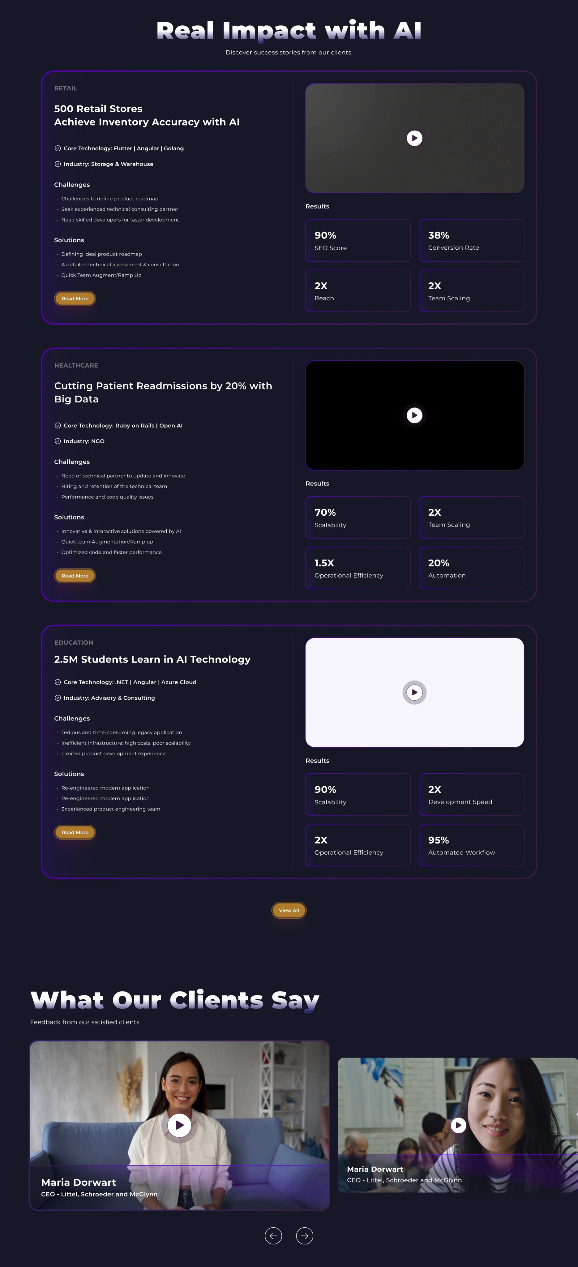 To address these challenges, the redesigned website focused on clarity, guided exploration, and conversion-driven UX. The solution translated complex AI capabilities into outcome-focused narratives while creating seamless user journeys.